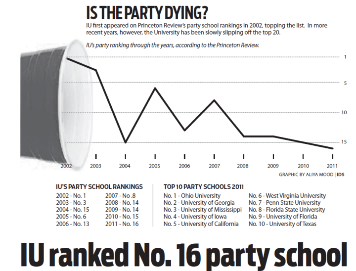 IU has also been ranked in the top 20 party schools several times in the past 10 years.